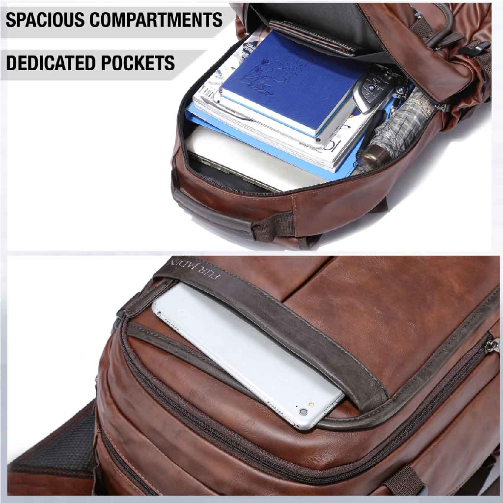 - Premium Faux Leather laptop backpack for uber cool travellers as well as for office use and students.
